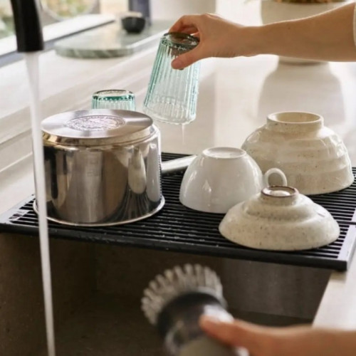 Изготовленная из высококачественных, безопасных и долговечных материалов, сушилка выдерживает интенсивную ежедневную эксплуатацию. Нескользящие ножки гарантируют устойчивость, предотвращая скольжение по поверхности раковины. Специальная решетчатая структура обеспечивает отличную циркуляцию воздуха, значительно ускоряя процесс сушки.