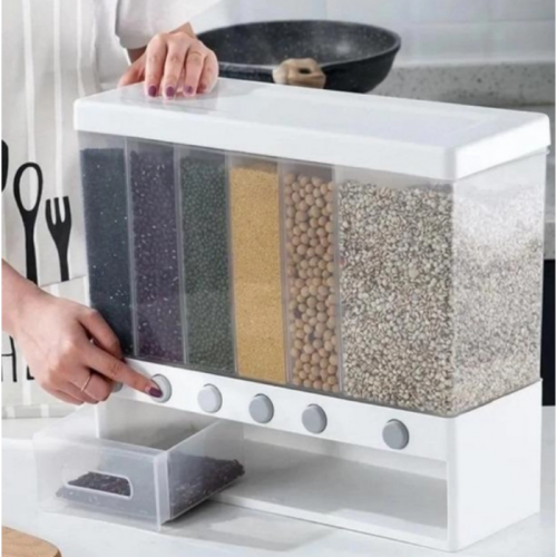Диспенсер для сыпучих продуктов с 6 отделениями является удобным и практичным решением для хранения и дозировки различных сыпучих продуктов. Он оснащен шестью отделениями, каждое из которых оборудовано герметичной крышкой и механизмом для сохранения свежести и предотвращения проникновения влаги, воздуха и запахов. Это обеспечивает долговременное и безопасное хранение продуктов.