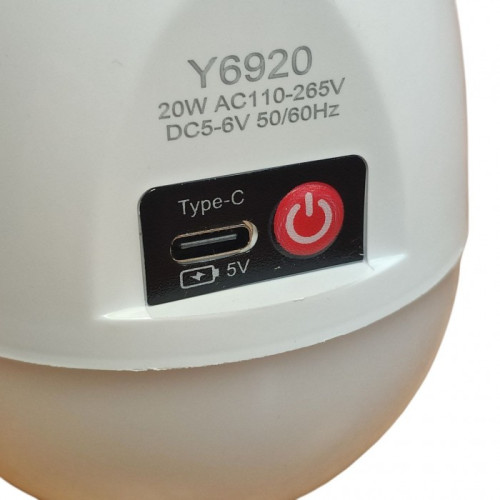 Светодиодная лампочка с аккумулятором автономная аварийная лампа 20W E27 3 режима свечения Y6920 с Type C