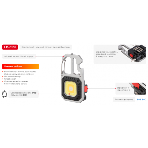 карманного фонарика также есть: открывалка, карабин, аварийный молоток, 4