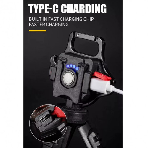- USB зарядка: Фонарь оснащен встроенным аккумулятором и портом USB Type-C для удобной зарядки.