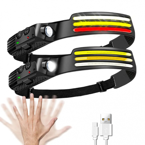 Фонарь налобный COBA CB-689-3 аккумуляторный с датчиком движения и красным светом