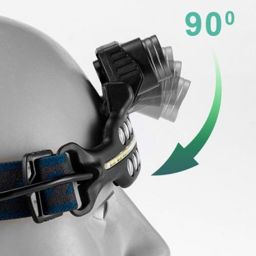 - Налобный аккумуляторный фонарик на двух видах светодиодов и Type-C зарядкой. Присутствует датчик движения для включения фонарика взмахом руки.