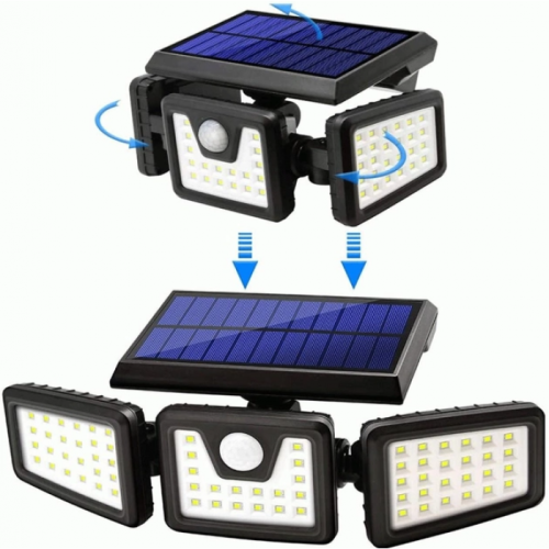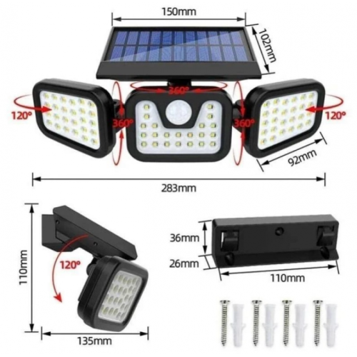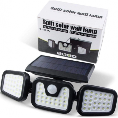 Поворотный тройной настенный фонарь FL-1725A с датчиком движения и солнечной батареей