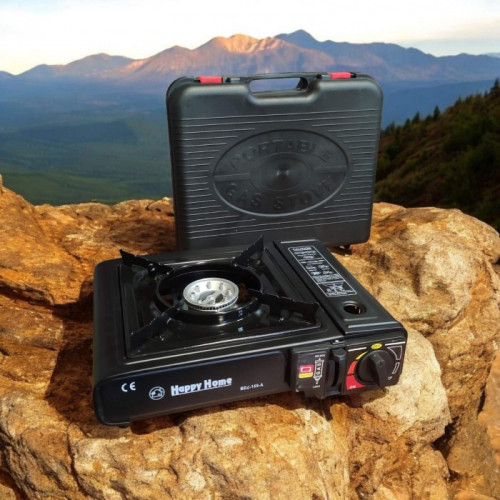 Газовая плита - это одноконфорочная газовая модель под цанговые или большие баллоны (есть переходник). Благодаря компактным размерам устройство идеально подходит для туризма, выездов на природу или для дачи. Плита функционирует от цангового 220 граммового баллона, который устанавливается внутри плиты. Девайс расходует 165г/час и имеет пьезоподжиг.