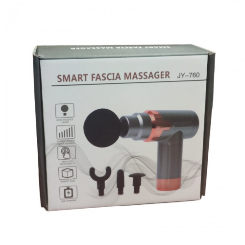 Мышечный массажерFascial Gun JY-760 использует метод вибрационной терапии, сочетающий определенную амплитуду, частоту вибраций и крутящий момент массажного элемента. Эффект достигается за счет воздействия на внутренние слои сухожилий, мышечной ткани и фасции, не вызывающие боли. Массажер выполнен в эргономичной форме в виде пистолета, он комфортно сидит в руке, им удобно пользоваться. В комплекте имеются 4-е насадки, для воздействия на определенные группы мышц ног, ягодиц, спины, груди, запястья и лодыжек. Оптимальная длительность сеанса - 15 минут, работает от встроенного аккумулятора.