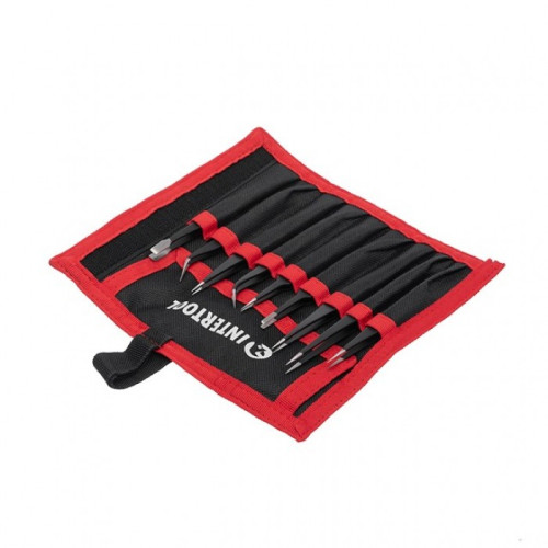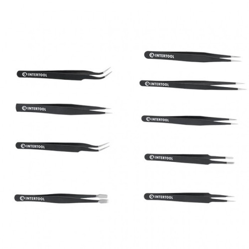 Набор пинцетов радиотехнических 9 шт, антистатические, в чехле INTERTOOL NT-6002