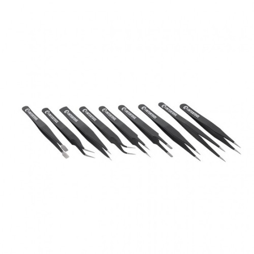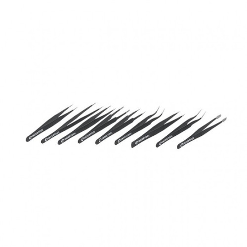В наборе девять пинцетов с различной формой рабочих наконечников для выполнения различных задач: