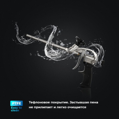 Тефлоновое покрытие держателя баллона обеспечивает легкую очистку от пены. Надежный запорный клапан не заставит вас беспокоиться о выходе пены из пистолета при замене баллона. Также обеспечивается герметичность при хранении пистолета.