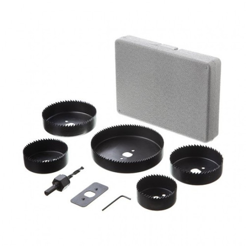 Набор корончатых сверл по древесине сборный 64-127 мм, 8 шт. (64,76,89,102,127мм) INTERTOOL BT-0024