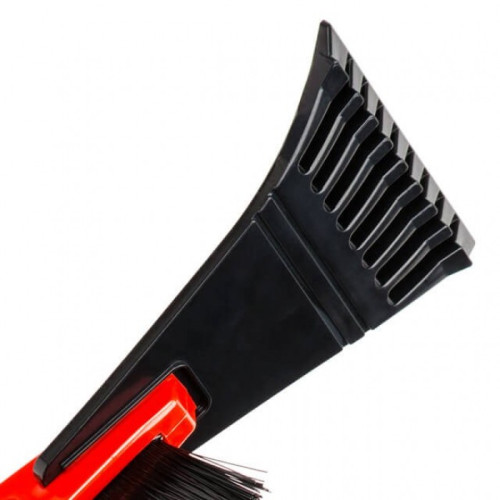 Щетка со скребком выполнена из прочного морозостойкого пластика, не нагружает спину и руки. Имеет усиленную конструкцию с ребрами жесткости для большей надежности и долговечности. Оптимальное расположение рабочих инструментов на одной стороне позволяет быстро переключаться от сметки снега до удаления толстых ледяных корок. Место хвата с мягкой накладкой не скользит в ладони и обеспечивает комфортную работу на морозе.