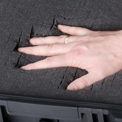 Полностью герметичный кейс надежно защищает свое содержимое от воды, пыли, грязи и агрессивных жидкостей. Выступы на крышке полностью совпадают с пазами в нижней части контейнера, а неопреновая прокладка герметично заполняет своим веществом пространство между ними.