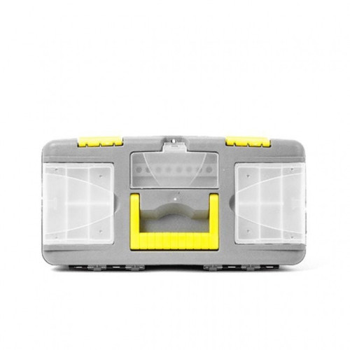 Ящик для инструмента INTERTOOL BX-0314 практичный и удобный в использовании. На крышке расположены два отдельных съемных органайзера с разнообразными ячейками, отлично подходящими для хранения метизов или любых других мелочей. Там же расположен отдел для хранения бит, закрывающийся прозрачной крышкой.