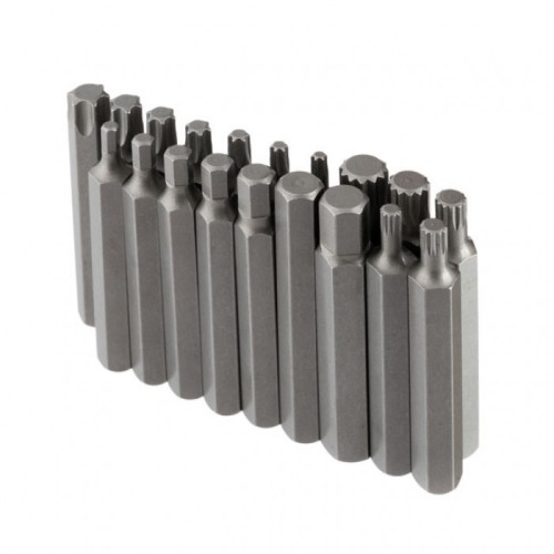 Набор состоит из 40 предметов. Разнообразие бит и шестигранников (TORX, HEX, Spline) в двух размерах 30 и 75 мм позволяют эффективно работать в труднодоступных местах и гарантируют надежное сцепление со шлицом крепежа.