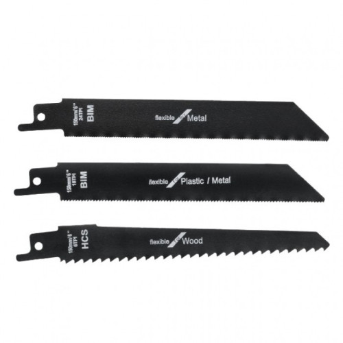 Рукоятка совместима с обычными полотнами для сабельных пил, поэтому, при наличии подходящего полотна, может использоваться для обрезки любых материалов. В комплекте поставляются 3 полотна длиной 150 мм: