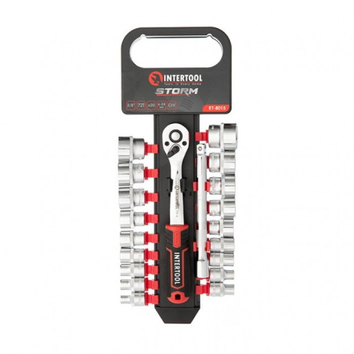 Набор головок 3/8" 6-24 мм., удлинитель, рукоятка с храповым механизмом 72 зуба, 20ед., Cr-V STORM INTERTOOL ET-8015