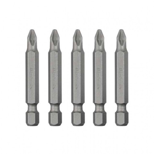 Насадки изготовлены из сверхпрочной стали S2, которая считается лучшей в своем сегменте. В состав этой стали входят молибден и кремний, оказывающие ей высокий уровень сопротивления нагрузкам и низкий порог обратной деформации. Также сталь S2 отличается долговечностью и не подвержена влиянию хрупкого разрушения, биты устойчивы к коррозии. Твердость стали составляет 61–62 HRC.
