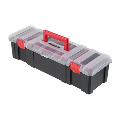 Крышка изготовлена из прочного полипропилена и устойчива к сколам. Прозрачность крышки помогает быстро находить необходимые предметы. Органайзер имеет удобную ручку для транспортировки.