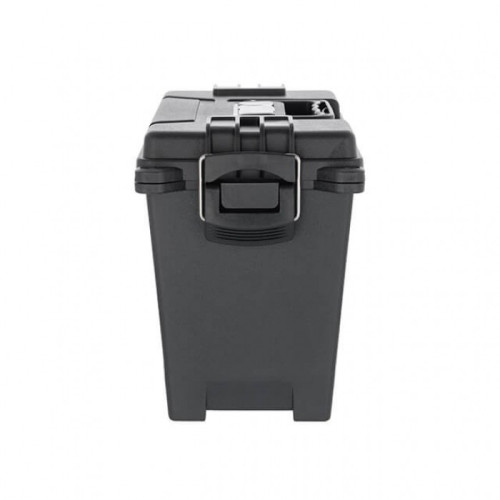 Конструкция замка с мощной стальной защелкой в сочетании с уплотнителем из резины обеспечивает плотное соединение крыши и основного контейнера ящика. Контейнер защищен против самовольного открывания и гарантирует полную безопасность ваших вещей.