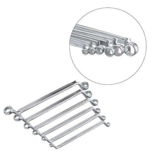 XT-1201 — набор из 6 накидных ключей. Размерная линейка: 6х7; 8х9; 10х11; 12х13; 14х15; 16х17 мм. Кольцевое строение рабочей части позволяет равномерно распределять нагрузку в момент приложения усилия, что существенно снижает риск «слизать» грань угла. Надежность и долговечность инструмента обеспечивает материал изготовления ключей — хром-ванадиевая сталь. Это обуславливает очень высокие эксплуатационные характеристики: повышенную устойчивость к механическим нагрузкам, коррозионную стойкость и твердость. Кроме того, данная легированная сталь обладает благоприятным модулем упругости, а удобная форма ключа и специальный изгиб обеспечивают оптимальные условия для приложения усилия даже в тех местах, где обычный рожковой ключ будет бесполезен. Набор поставляется в пластиковом держателе.