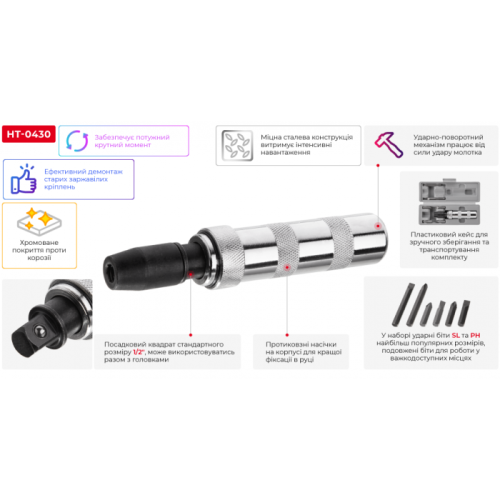 Отвертка ударная с комплектом насадок 6 ед. INTERTOOL HT-0430