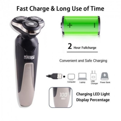 Электробритва для мужчин роторная для влажного и сухого бритья с плавающими головками DSP 60017 IPX6 USB 5W