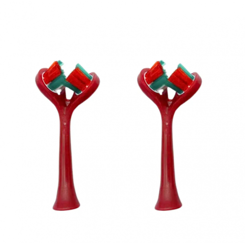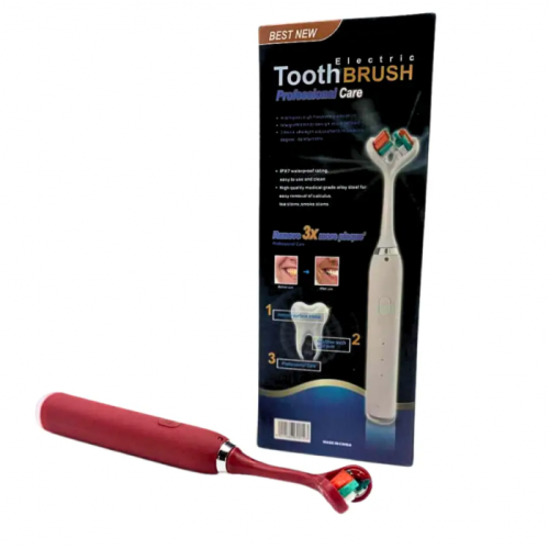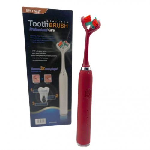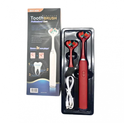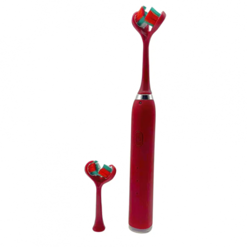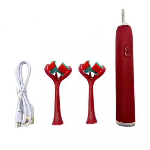 Ультразвуковая зубная щетка электрическая с двойной головкой на 3 режима Красная