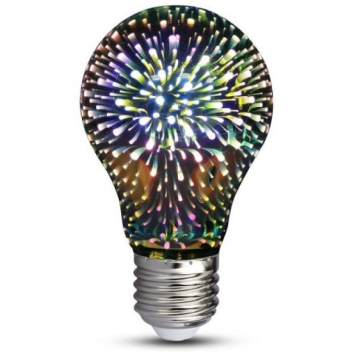 Лампочка ночник 3D Фейерверк A60, Е27, 4Вт Светодиодная лампа в патрон