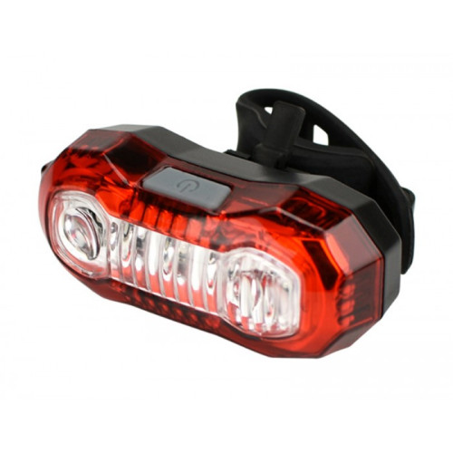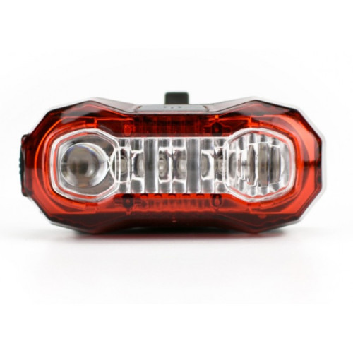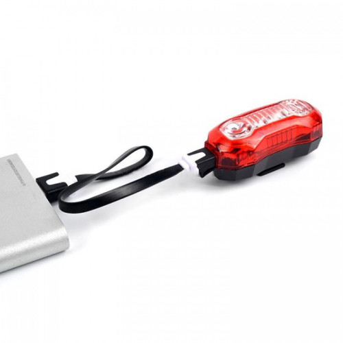 Задняя велофара Huibo BL-203 станет надежным помощником при катании на велосипеде в темную пору суток. Представленная модель оснащена 5 диодами красного света и способна работать с яркостью до 150 люмен. Три мелких светодиода посредине и два основных по краям. Эффективная дальность освещения при этом составляет порядка 4 метров, однако свет от этой велофары видно на расстояние до 500 метров (ночью), благодаря чему модель можно использовать при передвижении по автомобильным дорогам. Конструкция устройства продумана специальным образом, чтобы радиус видимости светодиодов 180°, что позволяет безопасно перемещаться по дорогам общего пользования не боясь быть незамеченным. Фара имеет 5 разных режимов: Обычное свечение, мигание всех диодов одновременно, свечение двух боковых диодов, поочередное мигание каждого диода слева направо и наоборот, медленное включение и выключение крайних диодов. Работа велофары осуществляется с помощью встроенного литиевого аккумулятора. Также устройство оснащено специальным контроллером IC с защитой от заряда и разряда, что сделает работу устройства полностью безопасной и эффективной. Батарея в устройстве перезаряжаемая, зарядка производится с помощью micro-USB кабеля в комплекте. При зарядке, возле диода с боку зарядного порта, светится мелкий индикатор заряда. Когда он светит красным, значит зарядка ещё не завершена, а когда зеленом, значит аккумулятор заряжен полностью. Полная зарядка занимает около 2 часов. Крепления фары осуществляется с помощью специального резинового ремешка с регулировочными отверстиями которые позволяют менять диаметр крепления и тем самым подходит для разных моделей велосипеда. Крепиться устройство под седлом. Корпус данной модели сделан из прочного пластика и защищен от пыли и влаги. В нижней части, под самой фарой есть небольшая резиновая кнопка, которая отвечает за включение и переключение между режимами. Сбоку также находится зарядный порт под специальной резиновой заглушкой. Это обеспечивает фонарю защиту от попадания в батарейный отсек влаги.