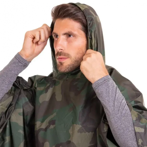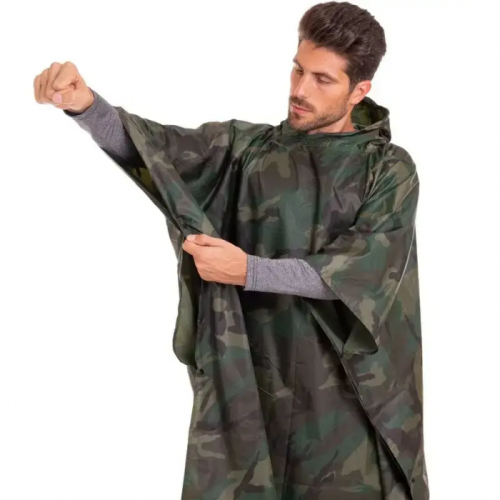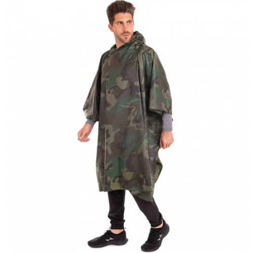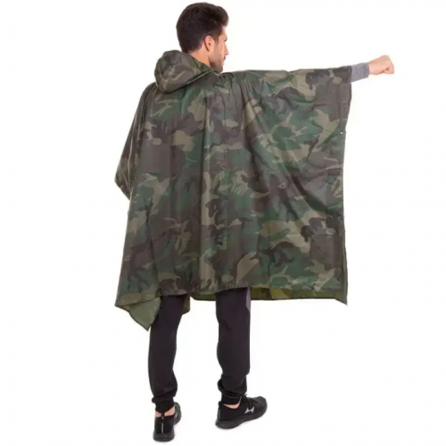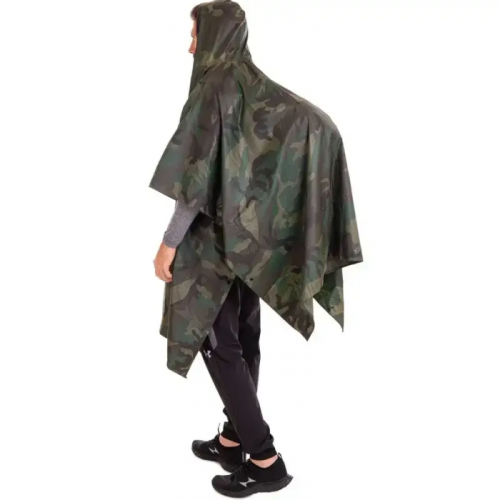 Плащ от дождя мужской пончо дождевик многоразовый с капюшоном Тёмный-камуфляж