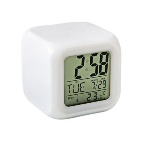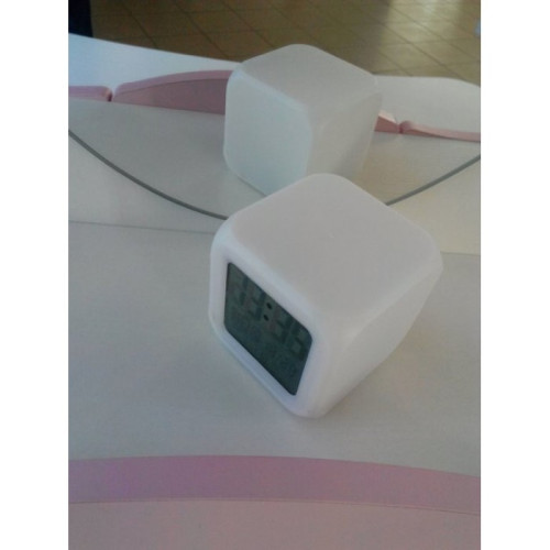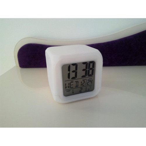 Но есть огромное количество плюсов. В будильнике помимо функции часов и будильника, есть функция даты, температуры воздуха (в Цельсиях и фаренгейтах), настройки года, а также умопомрачительная подсветка. Подсветка переливается всеми цветами радуги, при переходе минуя тысячи оттенков. Подсветка начинает работать от прикосновения руки. Например, Вы не любите когда ночью что - то мигает, но вдруг Вы проснулись ночью и Вам нужно увидеть время или попить воды, и тут достаточно только дотронуться рукой до будильника и комната озарится приятным цветом, а Вы легко увидите точное время.