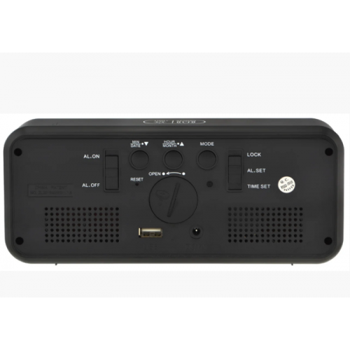 В первую очередь следует отметить необыкновенный дизайн изделия. Часы имеют вытянутую форму, их корпус выполнен из качественного пластика, устойчивого к механическим воздействиям. На задней части прибора расположены все кнопки для регулирования данных.