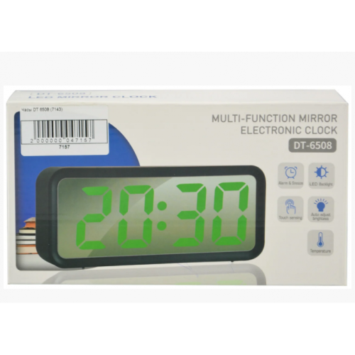 Зеркальные LED часы с будильником и термометром DT-6508 Чёрные (зеленная подсветка)