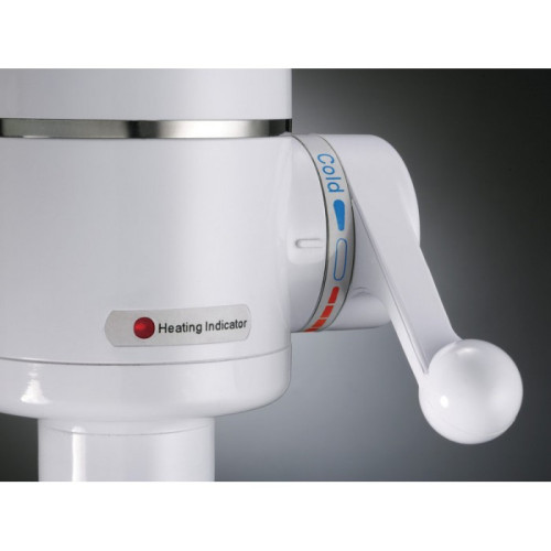 Внешне, прибор напоминает обычный смеситель, выполненный из пластика. Однако, в отличие от стандартного крана, внутри устройства находиться специальный нагревающий элемент. Водонагреватель начинает работать во время открытия вентиля и сразу же отключается, как только при его закрытии. При этом, нужная величина температуры жидкости достигается достаточно быстро, необходимо подождать всего несколько секунд.