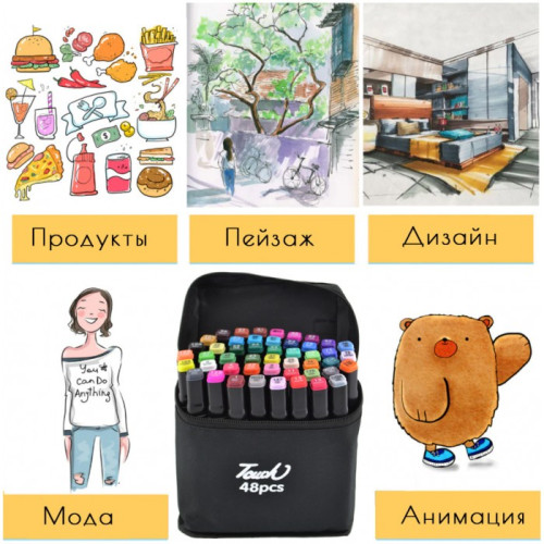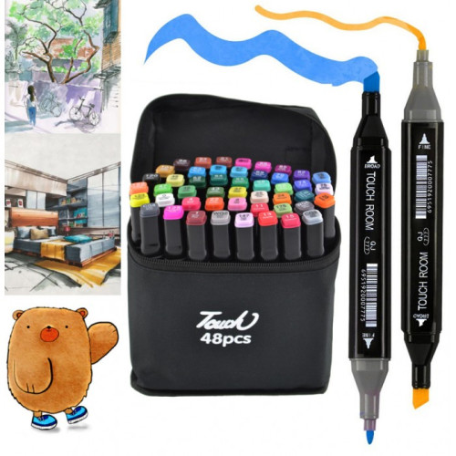 Набор двусторонних маркеров для скетчинга и рисования на спиртовой основе Touch Qiuci 48 шт