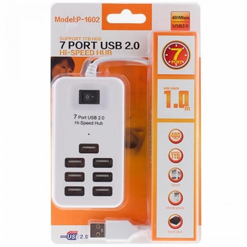 USB Хаб на 7 портов USB 2.0 P-1602 Белый