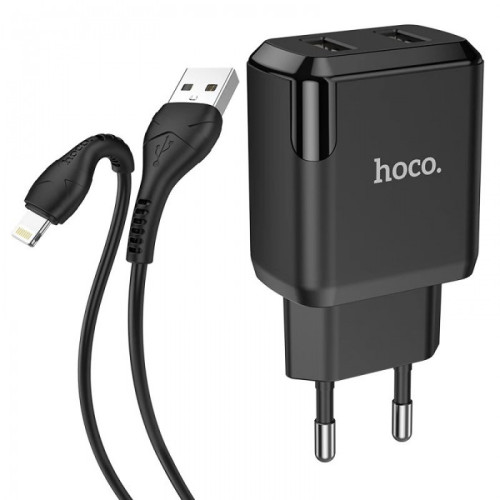 Зарядное устройство 220В 2 USB с кабелем USB - Lightning Hoco N7 Speedy Чёрный