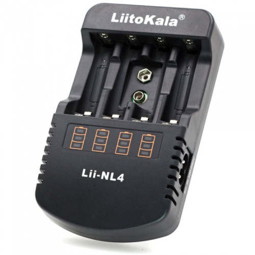 Liitokala Lii-NL4 - автоматичское универсальное зарядное устройство с помощью которого вы сможете заряжать пальчиковые, минипальчиковые аккумуляторы, а также аккумуляторы типа Крона. Зарядное устройство Liitokala Lii-NL4 отлично сочетает в себе два зарядных устройства. Данная модель полностью автоматическая - зарядка аккумуляторов прекращается при достижении максимального уровня заряда (не нужно рассчитывать время заряда). Liitokala Lii-NL4 имеет 4 независимых канала для АА и ААА аккумуляторов и 1 канал для кроны. Также присутствует LED индикация уровня заряда батарей - под каждым каналом есть три светодиода. В Liitokala Lii-NL4 есть функция определения неисправных и поврежденных аккумуляторов.