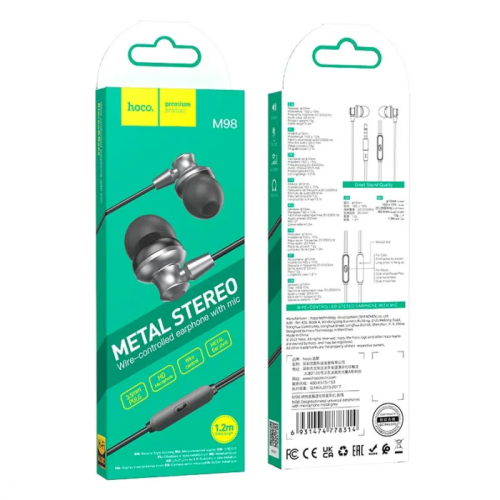 Hoco M98 Delighted metal With Microphone — проводные вакуумные наушники с микрофоном.