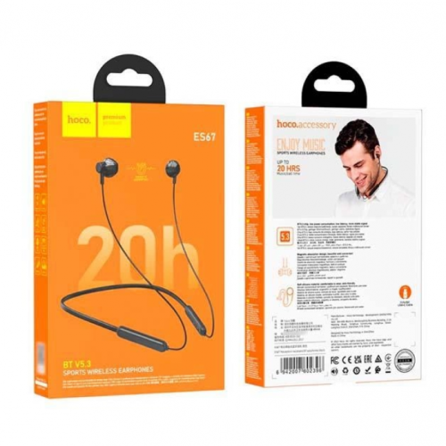 Беспроводные наушники с микрофоном вкладиши bluetooth для бега для спорта с MicroSD HOCO ES67 Черные