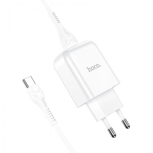 Сетевое зарядное устройство Hoco N2 Vigour с 1USB/2.1A с гибким кабелем Type-C Белый