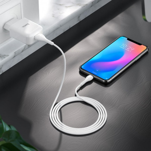 В Hoco N2 предусмотрен один USB вход с поддержкой технологии быстрого заряда. Максимальная сила тока, которую выдает адаптер, составляет 2,1A, а его мощность составляет 10,5W. К тому же благодаря Smart Identification Technology блок питания распределяет оптимальную силу тока безопасную для гаджета. В комплект входит кабель Type-C длиной 1 метр.