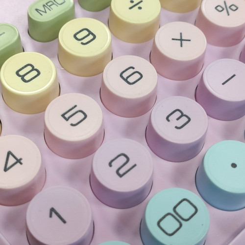 Этот калькулятор имеет уникальный дизайн в стиле пишущей машинки, четкий звук и специальные цвета, которые обязательно привлекут внимание. Простые линии и большие круглые кнопки в стиле ретро обеспечивают удобное прикосновение, упрощая любые вычисления.