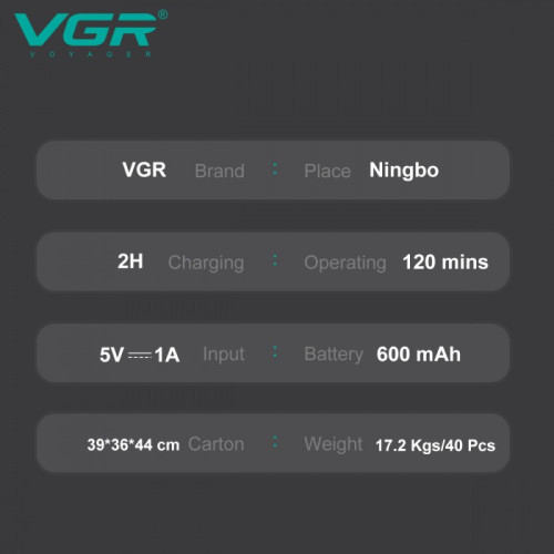 - Аккумуляторная машинка для стрижки VGR V-975