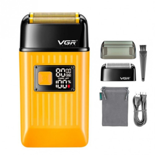 Электробритва VGR V-357 шейвер, двойное лезвие, 2 насадки, выдвижной триммер, IPX6 Золотой