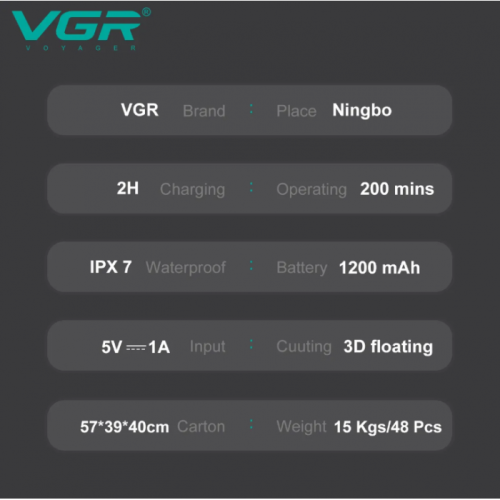 Электробритва аккумуляторная 1200мАч, от USB, бритва VGR V392 Синий