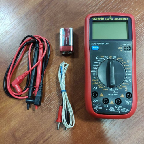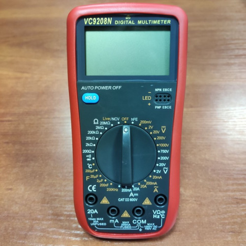 Цифровой мультиметр VC9208N предназначен для измерения сопротивления, постоянного и переменного токов, прозвонки, измерения емкостей, температуры. Главные отличия от более дешевых аналогов: прорезиненный корпус, белая подсветка, большой экран, качество щупов и проводов заметно улучшено.