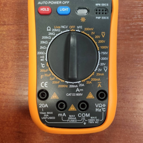 Постоянный и переменный ток измеряется данным тестером в диапазоне 20мА… 10А, с погрешностью от 1,2%+5 до 2%+8. Максимальное падение напряжения при измерении – 200мВ. Ёмкость конденсаторов измеряется в пределах 20пФ…200мкФ, погрешность измерений составляет ±(4%+10).