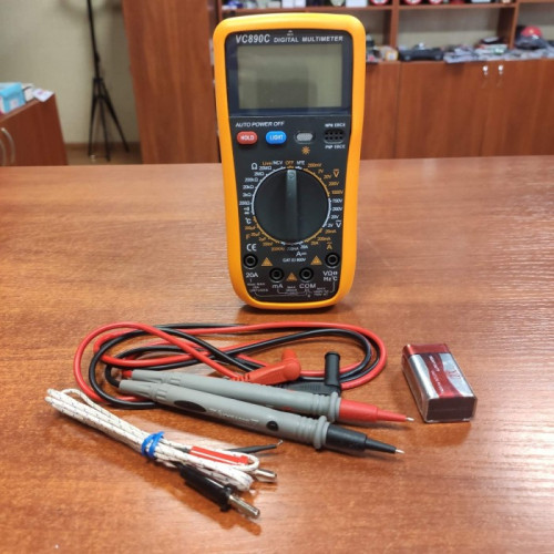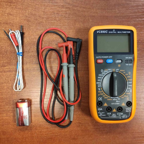 Цифровой мультиметр для измерений и тестирования VC890C – отличный вариант прибора как для домашнего (любительского) использования, так и для профессиональной деятельности. С его помощью Вы можете измерить постоянное и переменно напряжение, сопротивление, постоянный и переменный ток, емкость, а также проверить диоды и соединения, измерить температуру.