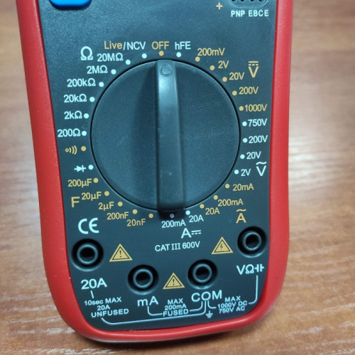 - Функции измерений: AC/DC напряжение, AC/DC постоянный ток, сопротивление, ёмкость, прозвонка, тестирование диодов